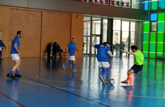 Nada más empezar la 2° parte Alberto, que sale despistado, no se da cuenta del cambio de portería y casi mete gol en propia.