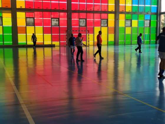 Dos amigos reencontrados en el campo de fútbol corren, chutan a portería defienden, atacan pero nadie consigue abrir el marcador.