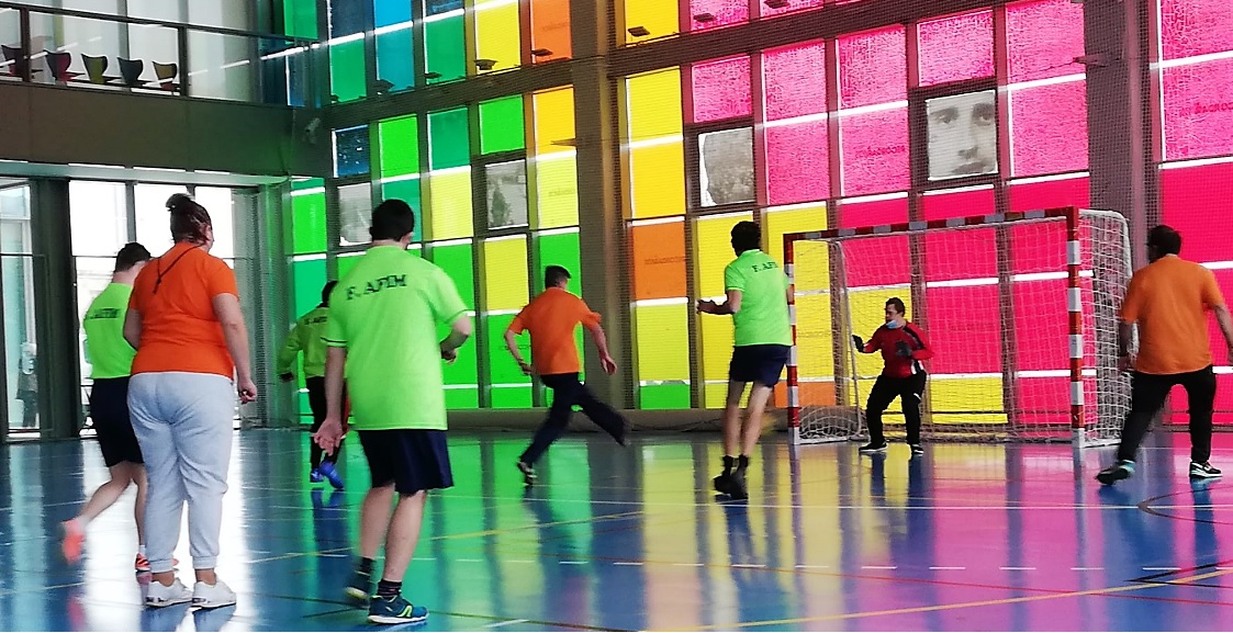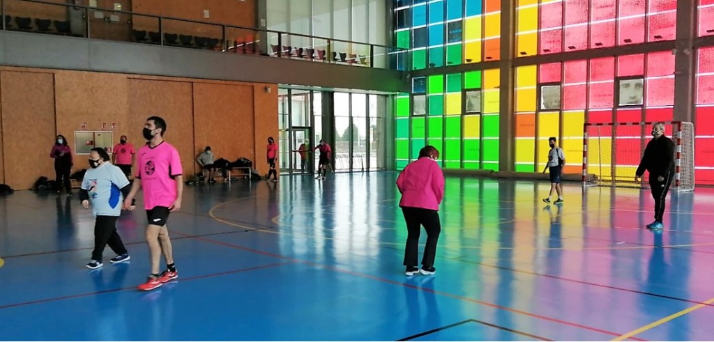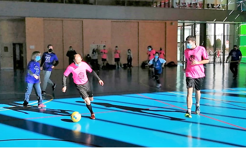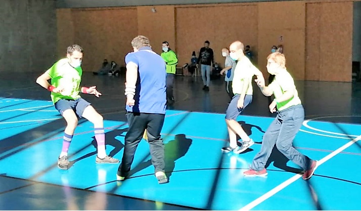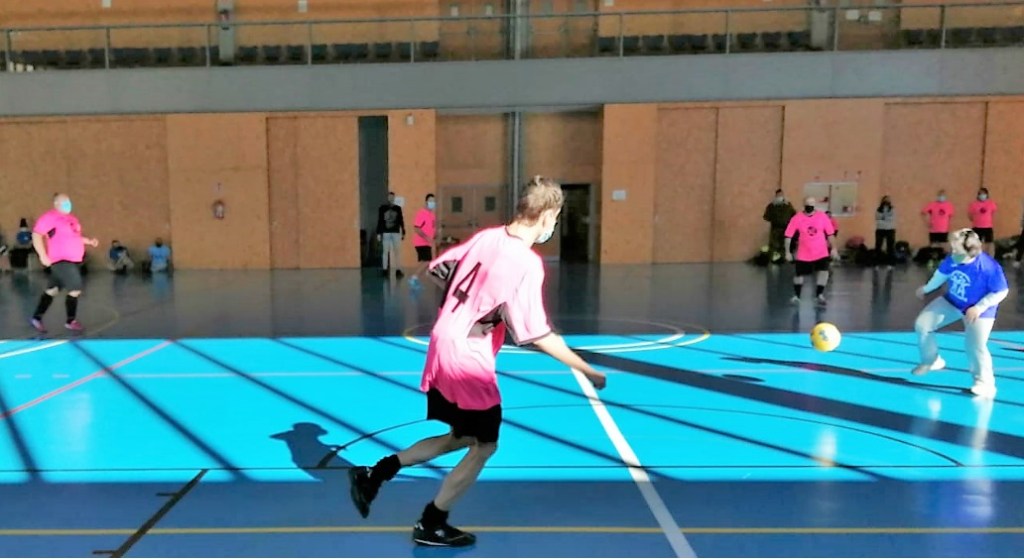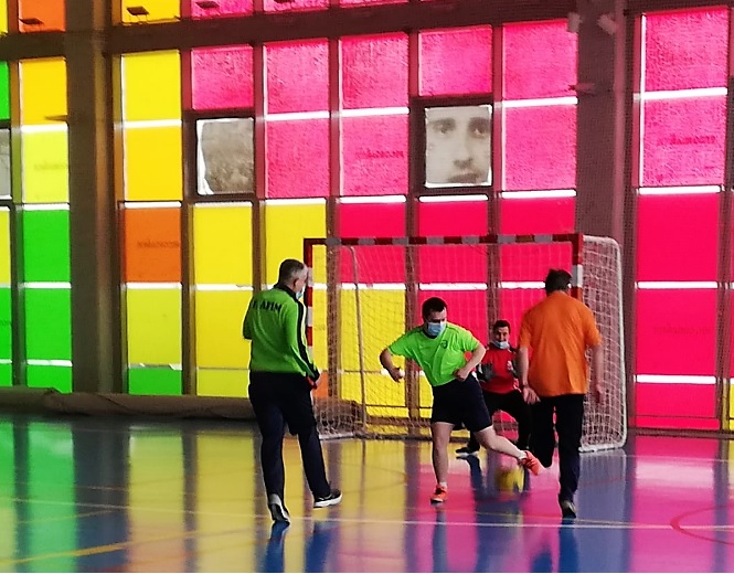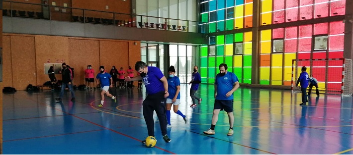 El entrenador de F. AFIM, Marcos, no ha podido asistir a esta jornada y nuestra educadora ANA toma su relevo. Comienza el juego con una reunión de equipo animando a todos los jugadores.