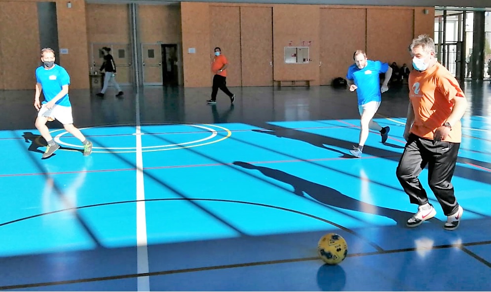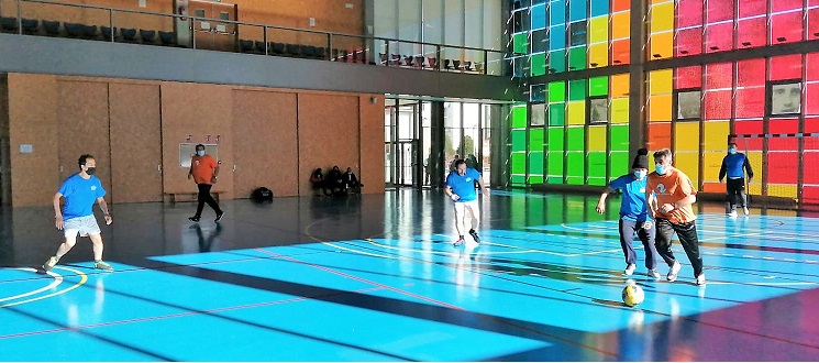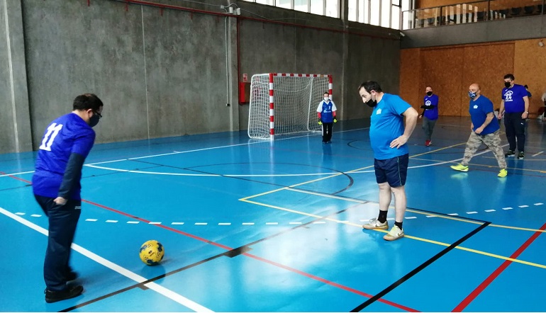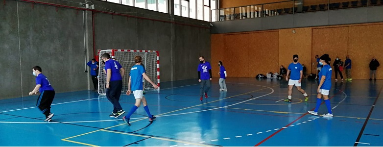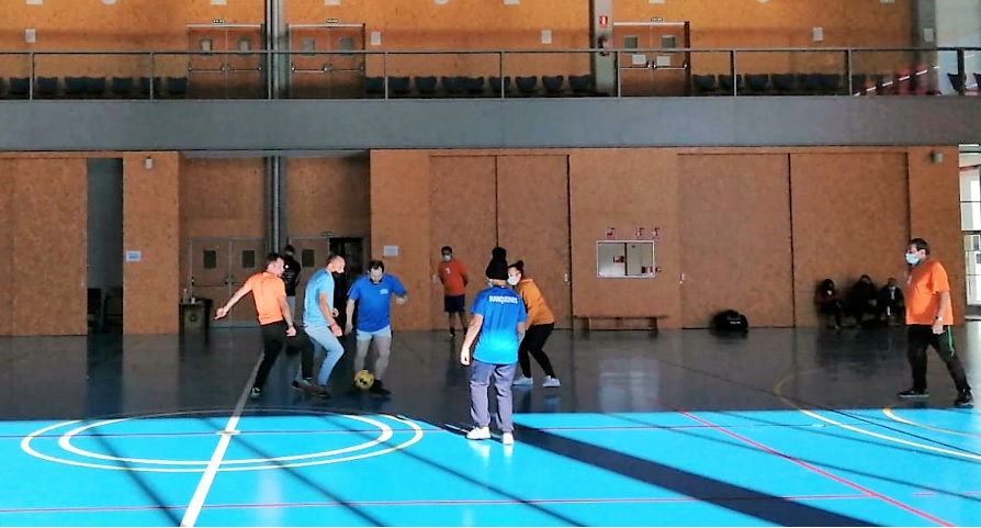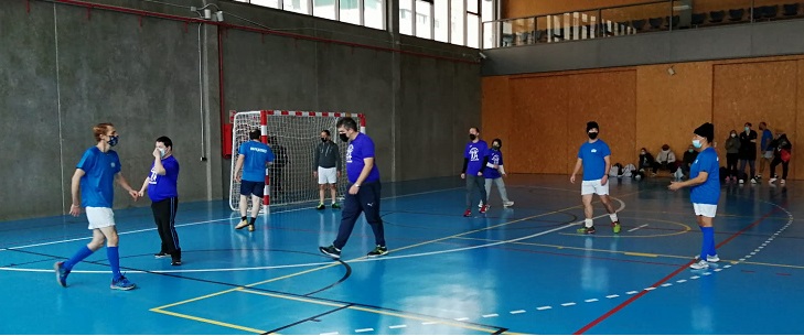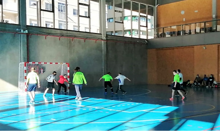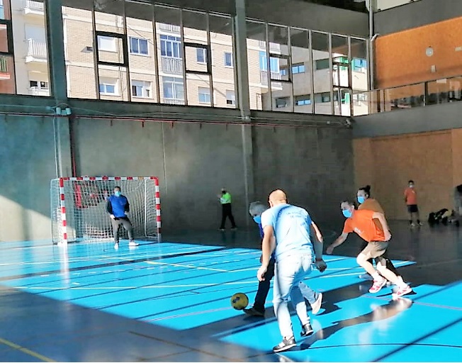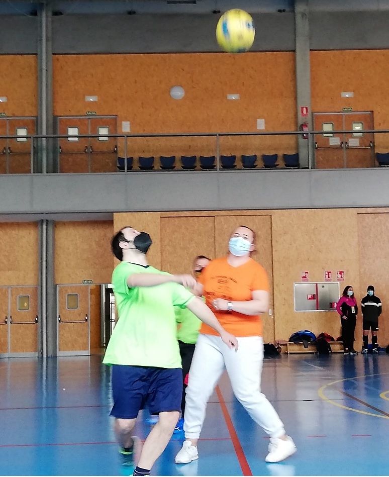 El entrenador de F. AFIM, Marcos, no ha podido asistir a esta jornada y nuestra educadora ANA toma su relevo. Comienza el juego con una reunión de equipo animando a todos los jugadores.