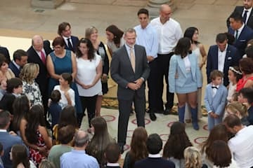Cuando me tocó a mi, el rey nos saludó a mi madre y a mi. Me preguntó que qué tal estaba, yo le dije que bien. Nos dio la mano y yo pensé: ¡Madre mía que mano más grande! De cuerpo me sacaba como dos cabezas.