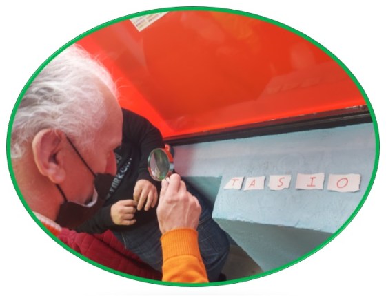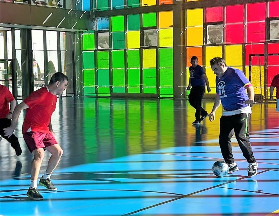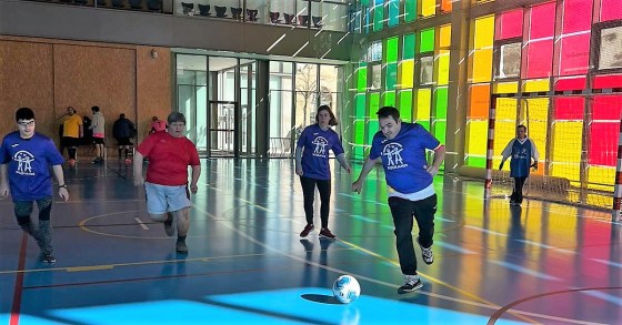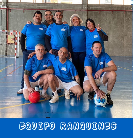 Los compañeros de INSOLAMIS retoman la jugada y luchan con todas sus fuerzas. Tasio coge el balón, lo defiende frente a sus oponentes pero lo pierde y sale fuera.