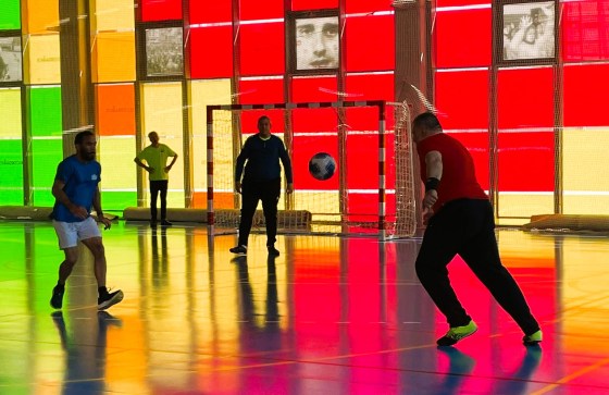 Salud Mental logra apoderarse del balón y, tras dos movimientos elegantes, dispara a la portería, pero… el balón termina fuera. ¡Qué poco ha faltado!