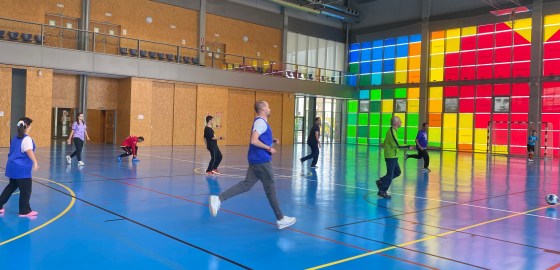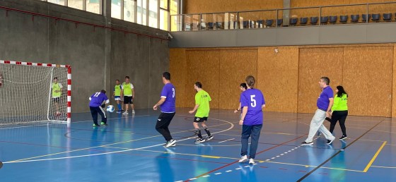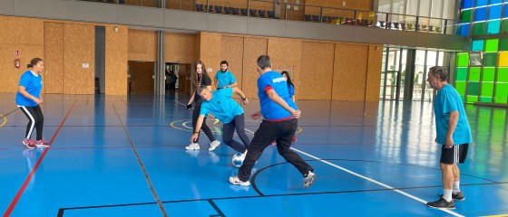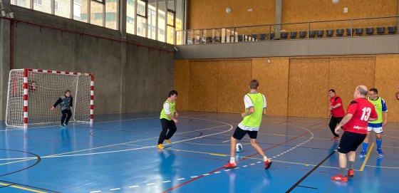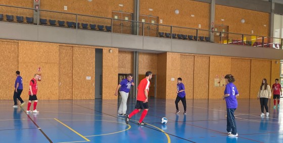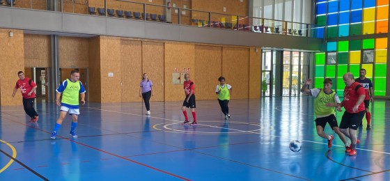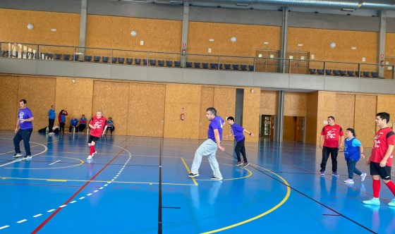 de Salud Mental, con una gran patada al balón marcan el primer gol de Insolamis y con el marcador que va 1 a 2, se escuchan los gritos de emoción del equipo.