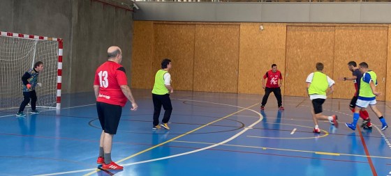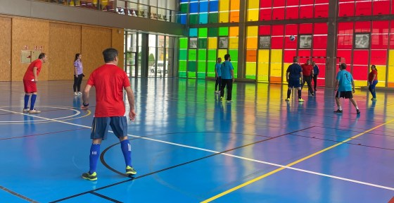 Da comienzo el segundo encuentro con saque de centro para Salud Mental, que juegan entre ellos avanzando sin pausa hacia la portería de Insolamis, aunque el balón termina fuera.