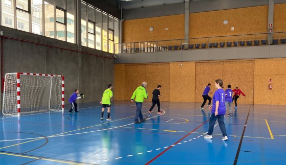 Saque del centro de Insolamis que avanza hacia la portería de Salud Mental pero con una gran defensa la roban y avanzan, de nuevo hacia la portería de Insolamis, nuevo tiro a puerte, pero esta vez, el portero de Insolamis realiza un paradón que evita un nuevo gol.