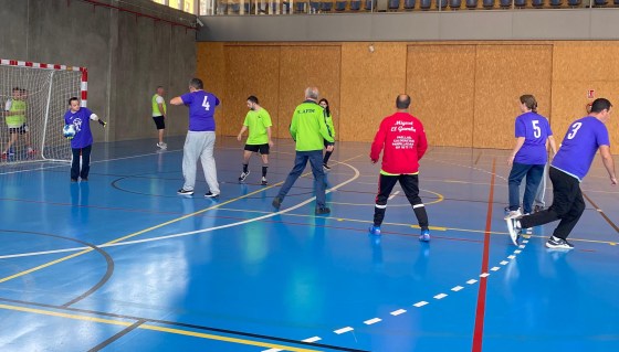 Saque del centro de Insolamis que avanzan, pero sale fuera. Rápido saque del portero de Salud Mental, sus compañeros avanzan sin tregua y… ¡¡nuevo gol que anotan en el marcador!!