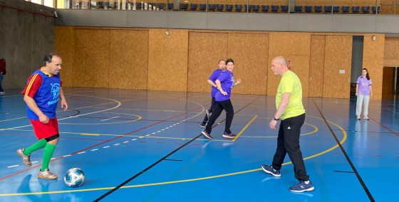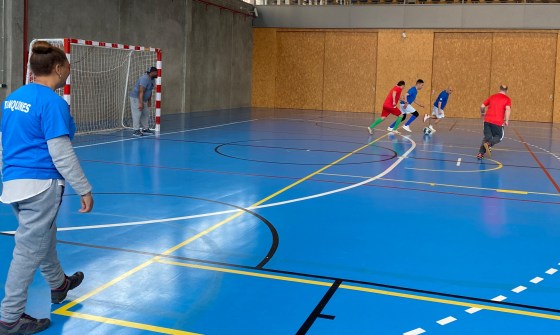 Salud mental intenta varias veces acercarse a la portería, pero la defensa del equipo de AFIM es muy buena y consigue redirigir el balón a su campo rápidamente.