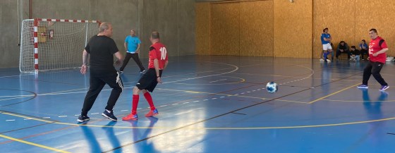 Tiene una gran ocasión el equipo de AFIM, que no se ha rendido en ningún momento, pero la para el portero de Salud Mental, que, reacciona rápidamente y el equipo anota un nuevo gol.