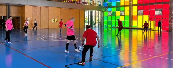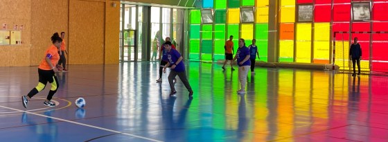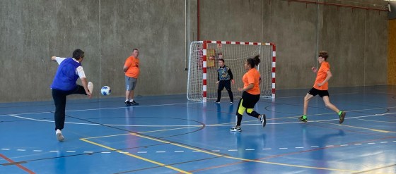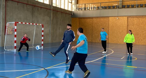 Qué paradón del portero de Salud Mental que saca un pie tremendo para evitar el empate.