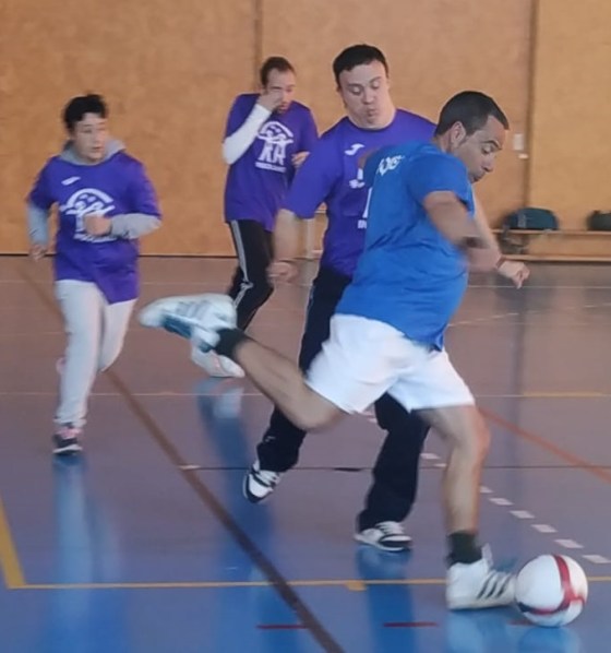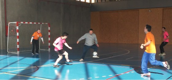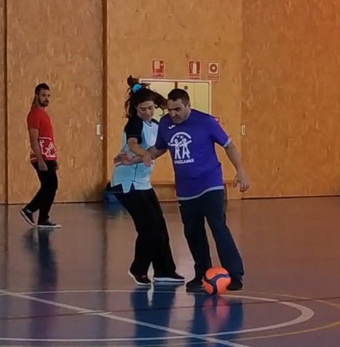 Se ha incorporado una jugadora de Insolamis, está corriendo  mucho para meter un gol en la portería. Gorka portero de Insolamis para el balón para que Aspar no meta gol, en una gran jugada.